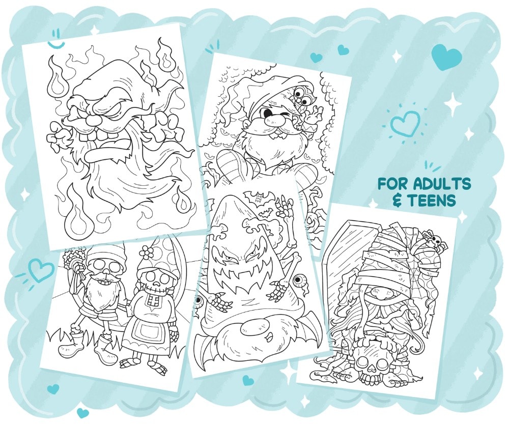 Kom in de griezelige sfeer met ons Halloween Kabouter Kleurboek, een leuke en angstaanjagend charmante digitale download, perfect voor tieners en volwassenen!