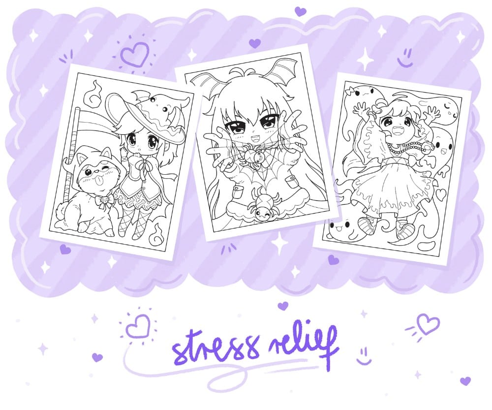 Add a touch of kawaii magic to your Halloween and make it extra colorful with this fun chibi coloring collection!
