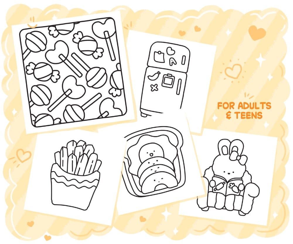 Super cute coloring book with adorable kitchen appliances, food and things you find in your pantry. It is full of simple, fun, relaxing illustrations that are easy to color.