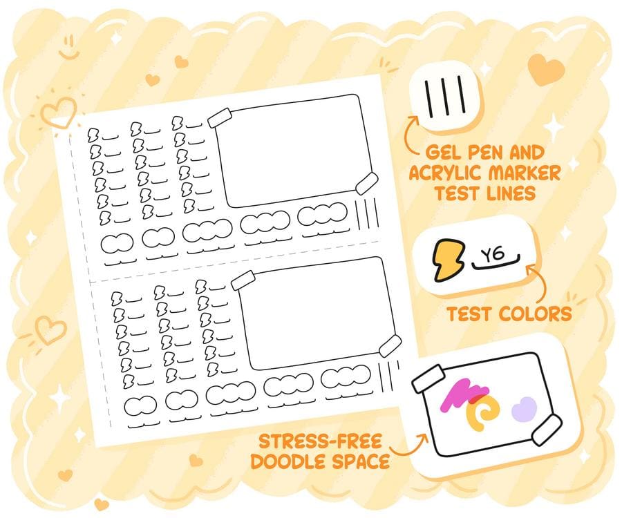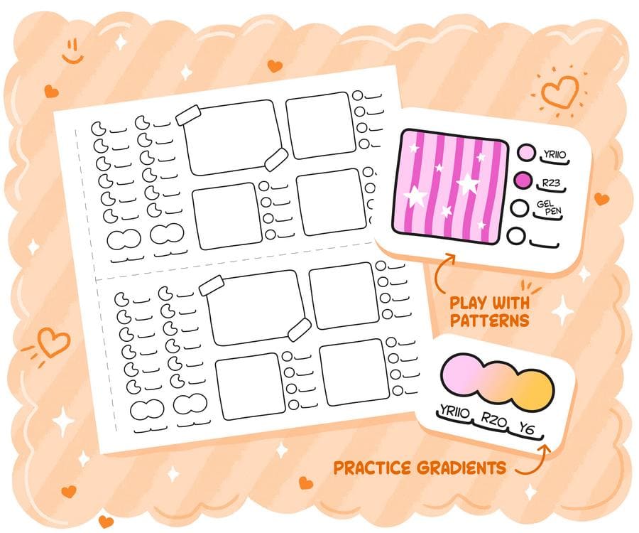 These cute pages are perfect to take along while you color any book. With the adorable swatch elements, you can test the colors you want to use, see how they blend for flawless gradients, and explore different patterns. There’s also space for scribbles and notes — always handy to have!