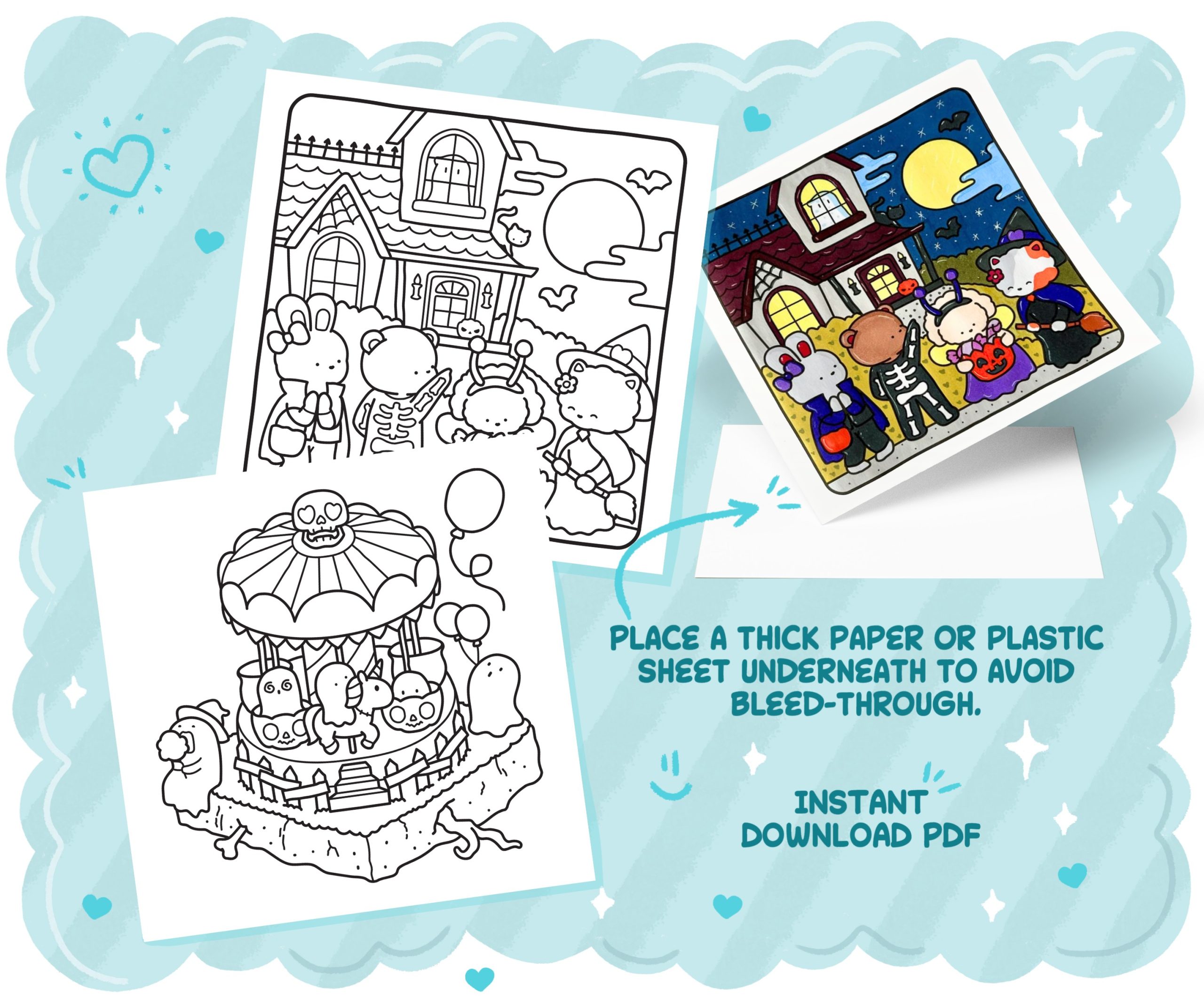 • A full PDF with 40 unique, adorable and spooky illustrations – no repeat!